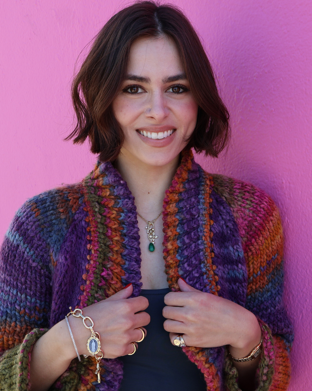 The bracelet itself and the charms are gold-filled brass. The gold color is in between rose and yellow.