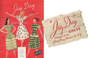 Left: Jay Day Dress Co. advertisement from Seventeen Magazine 1947. Right: The Original Jay Day Dress Co. clothing label.