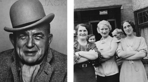 Left: Julius "Jack" Davis. Right: Jack's wife Jean (middle) with seamstresses in front of Jay Day Dress Co. offices in NYC.