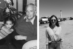 Left: Julia with grand-father Marvin Davis. Right: Julia on a drilling site in West Texas.